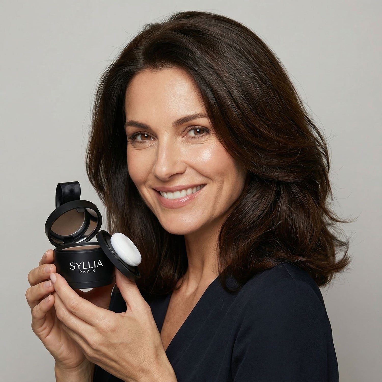 Le Poudrier Précision transforme racines et cheveux clairsemés en quelques secondes. Sans spray. Sans effet carton. Juste une couverture naturelle qui redonne confiance.